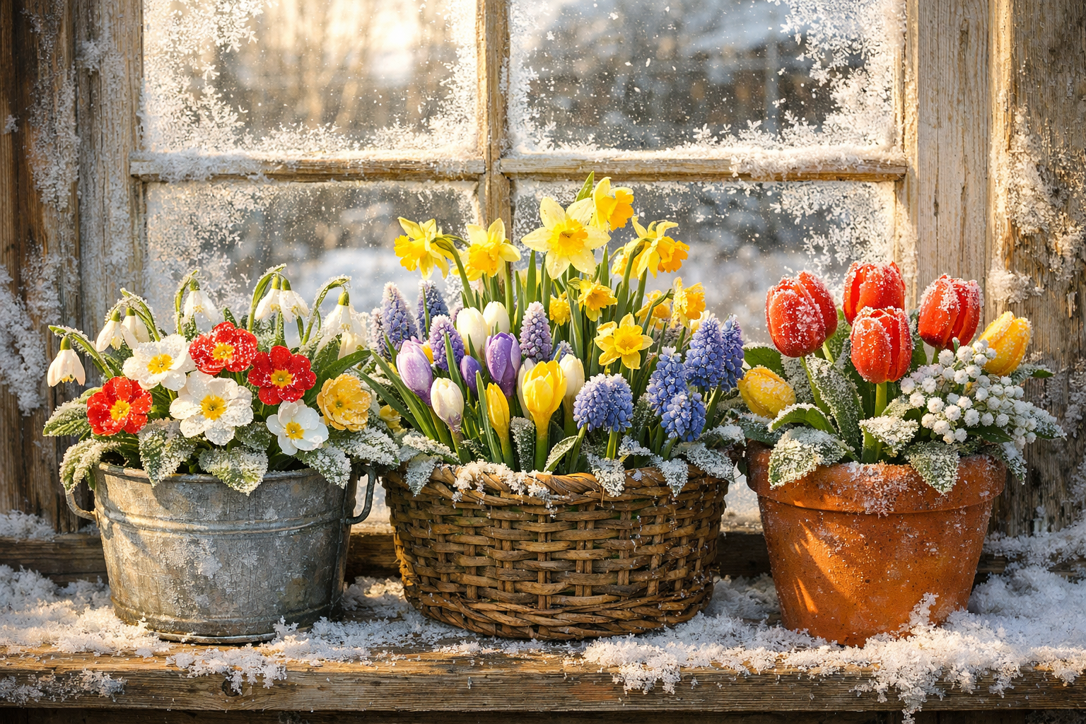 Die ersten Farben kommen von den winterharten Frühblühern: Neben den Primeln sind insbesondere die Knollenpflanzen ideal für erste Stimmungaufheller in allen Pflanzgefäßen: Schneeglöckchen, Krokusse, Narzissen, Traubenhyazinthen, Tulpen, Schachbrettblumen ... und jetzt im Angebot: